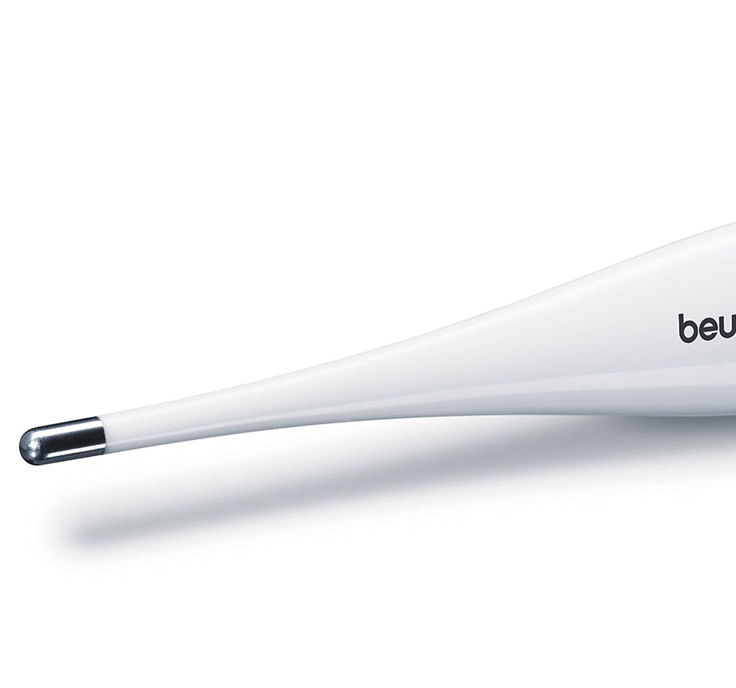 Digital fever thermometer Without glass, no mercury Measurement accuracy: +/- 0,1 °C Waterproof Disinfectable Automatic switch-off function Protective cover for storage Medical product Incl. Batteries