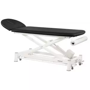 The Electric Massage Table in 3 parts Ecopostural C3525 is a 3 parts massage table operated by an electric height adjustment with a motor controlled by foot rails. Its steel frame with white epoxy powder coating heated at 250º is equiped with a frontal piece with high resistance polypropylene curved feet and a lateral piece.