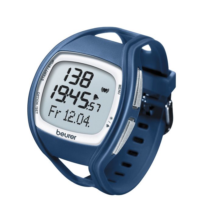 Heart rate monitor Beurer PM 45 gray - blue - ECG - precise heart rate measurement - Analog signal transmission - Individual training range settable with alarm and time in zone function - Time in zone/ below/ above of the training zone
