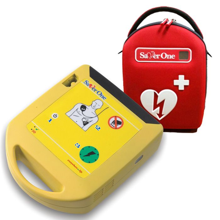 One semi automatic defibrillator Saver - For everyone - Sound Indication for assistance resuscitation - Comes with a carrying case and a complete user pack - Weight: 2 kg - Lithium battery - 5 year warranty